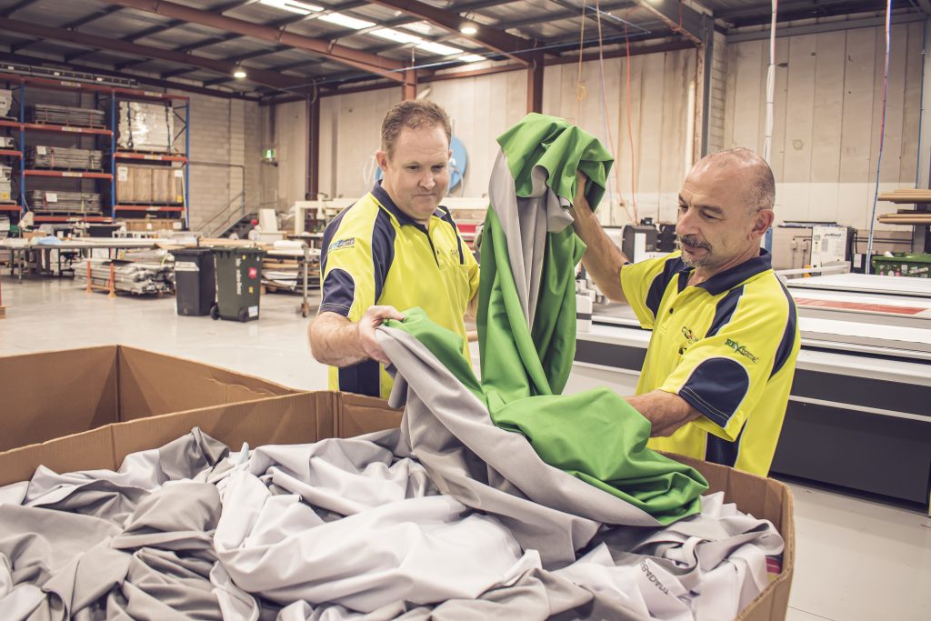 As a sustainability leader in the event, exhibition and signage industry, we were the first company to sign the Exhibition & Event Association of Australasia (EEAA) Sustainable Events 2030 Pledge and have a fully recyclable fabric process. Waste fabric is sent to BlockTexx, a Resource Recovery Facility, for conversion into high-value raw materials. Polyester textiles become PET pellets for use in manufacturing, and cellulose used for hydro-mulch or fertiliser. We offer frame rental and fabric storage to promote reuse and prevent waste. All aluminium offcuts, cardboard, and paper waste are recycled for a closed-loop system.