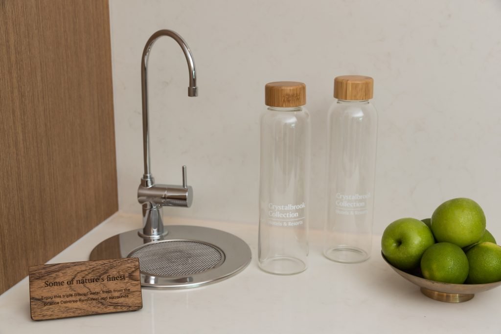 Crystalbrook Collection rooms feature glass water bottles and refill taps.
